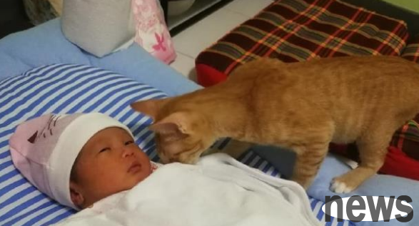 As if knowing that his mother was not at home, the baby started crying loudly at home not long after the netizen left. After the friend heard this, although he also tried to comfort the baby, the baby still lost his temper and kept making troubles. At this time, Orange The cat suddenly appeared, first crawled to the place where the baby put the milk powder, and signaled his friend to prepare the milk powder. Then the orange cat walked to the baby's side and played with the baby's head. After watching the friend prepare the milk powder, the orange cat kissed the baby's cheek and walked away. The baby started to cry and drank the milk obediently.