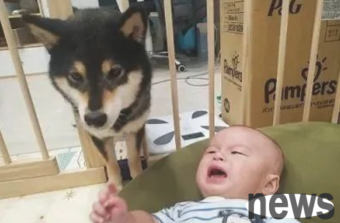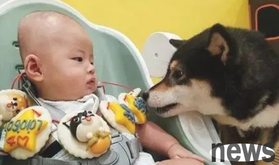 A netizen recently shared an interesting photo of a black Shiba Inu in close contact with a baby. Originally, the baby was eating rice cakes, but in the blink of an eye, Hei Chai snatched it away. The baby looked shocked. Why did the thing suddenly disappear?