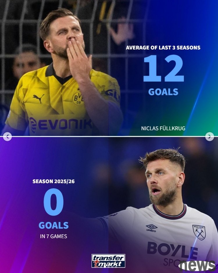 "Transfer Market" listed a number of players who have yet to score a goal this season and calculated their average number of goals in the previous three seasons.