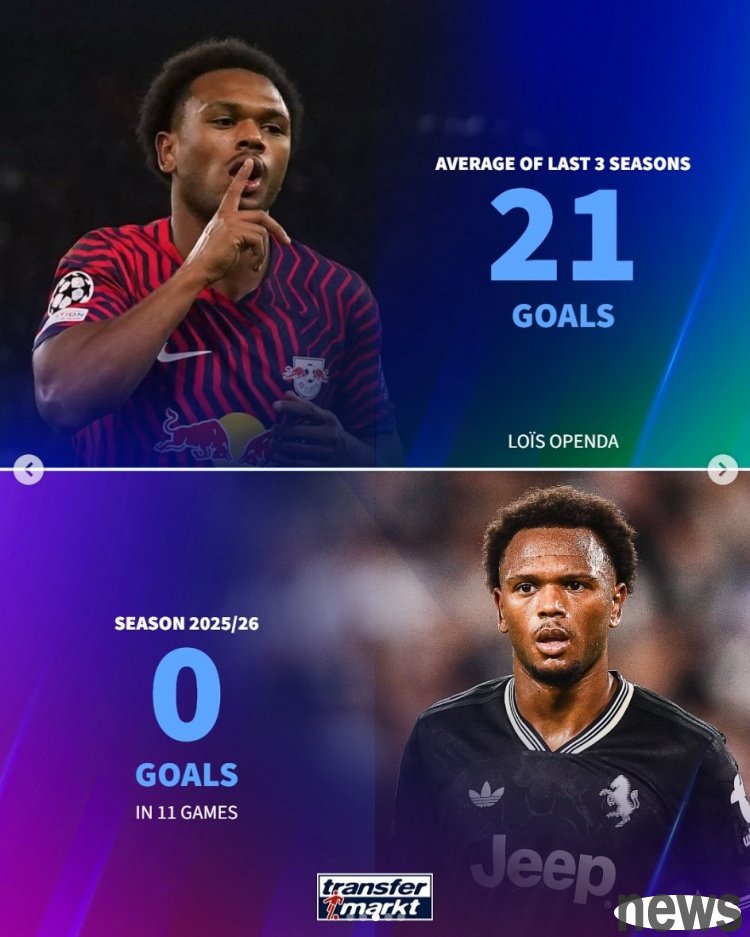 Oponda: 1 goal at Juventus this season 0 goals in 1 game, an average of 21 goals in the previous 3 seasons