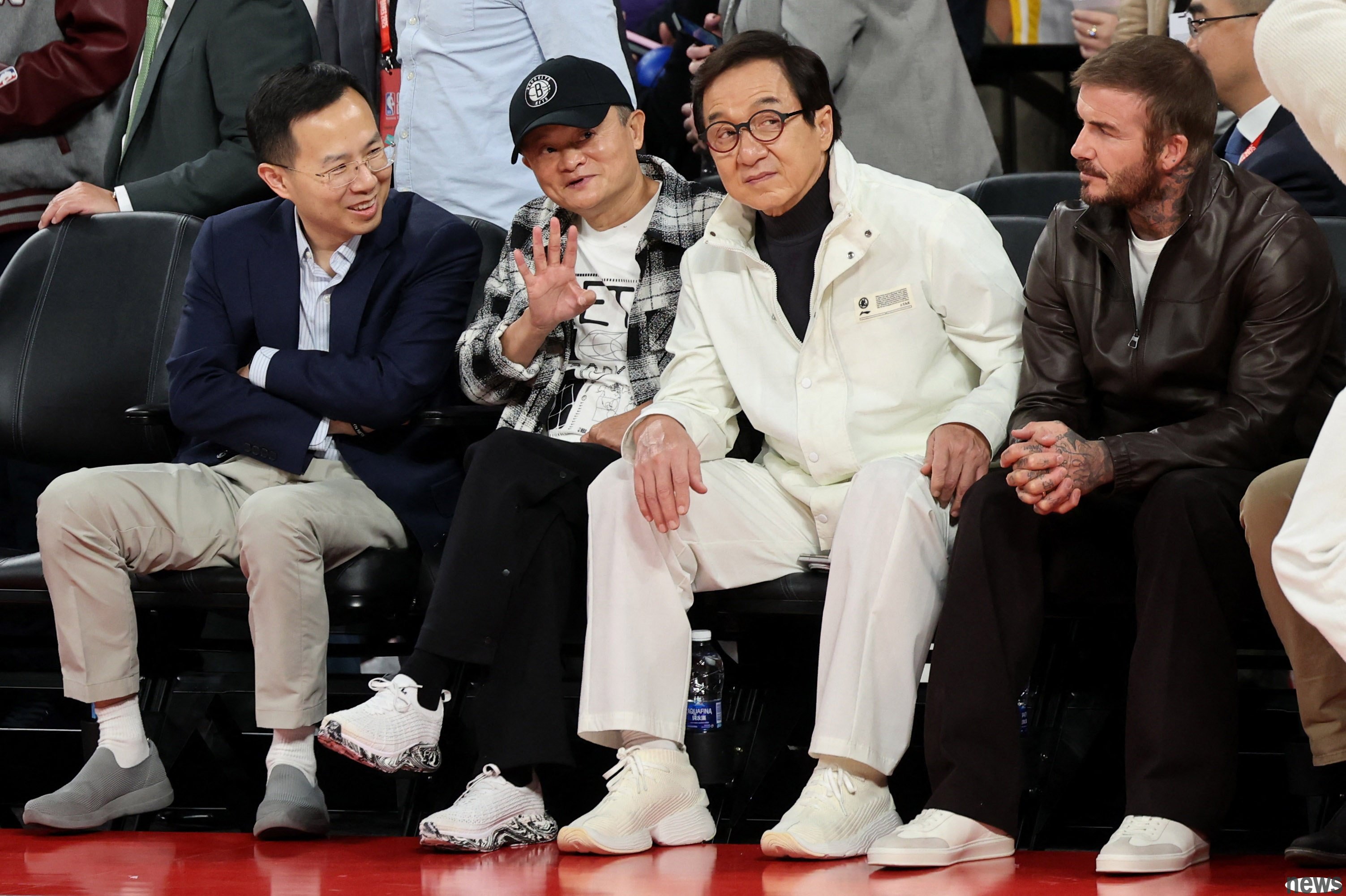 Noodles! Beckham, Jackie Chan and Jack Ma watch the NBA China game side by side